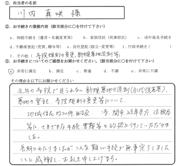 岐阜県関市/E様[行政手続き(寺院規則の変更など)]
